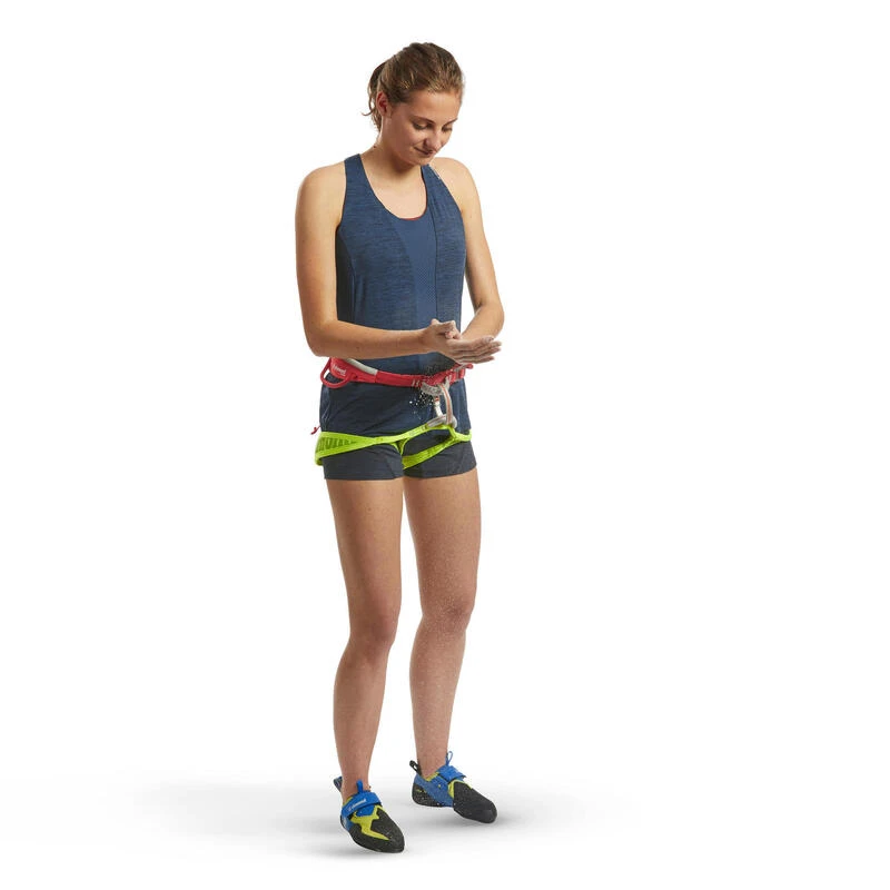 Compra en Decathlon Camiseta de escalada y montaña tirantes Mujer Simond Race azul Nuestro equipo de escaladoras expertas ha diseñado esta camiseta sin mangas para garantizar transpirabilidad y ligereza, en sala y en toca
